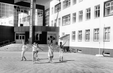 «Таких школ вы еще не видели», – загадочно предупреждали нас. Двор новооскольской средней школы № 2 в жаркий летний день буквально кишел школьниками с лопатами, метлами, носилками, лейками. Старшеклассницы красили ажурную решетку забора, драили фонтан с дельфинами, мальчишки несли куда-то носилки... «А это у нас будет водопад», – пояснили мне назначение двухъярусных бетонных конструкций над длинным земляным рвом – пока что безводным искусственным ручьем. Новенькие игровые конструкции детского городка вовсю осваивали малыши из начальной школы. Ребята постарше отдыхали в тени маленького дворика со скульптурными медведями. А перед входом в школу кружились в танце воспитанницы хореографа Оксаны Головко – репетировали номер к выпускному вечеру.